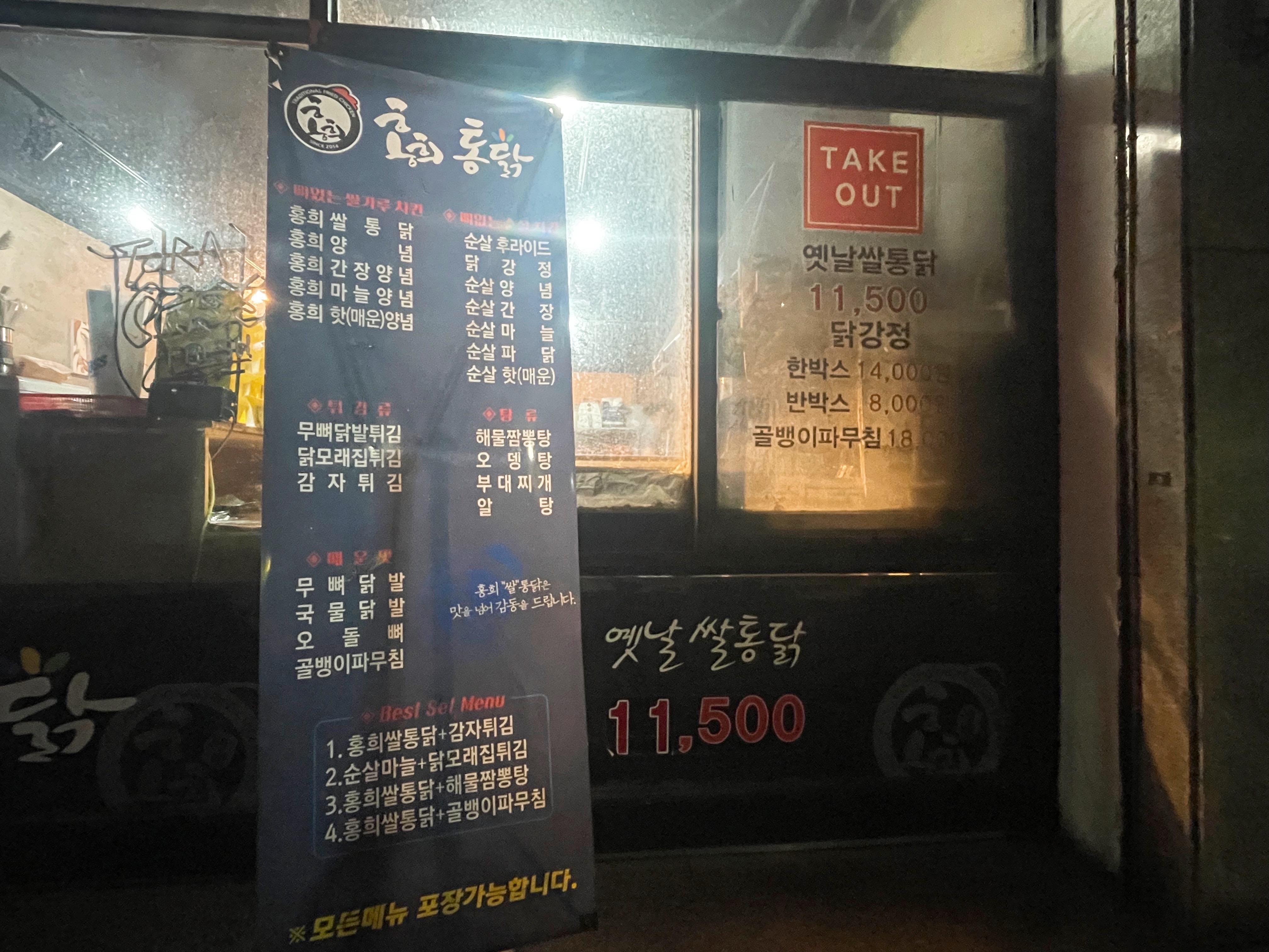 4. 홍희쌀통닭 + 골뱅이파무침 28,500원