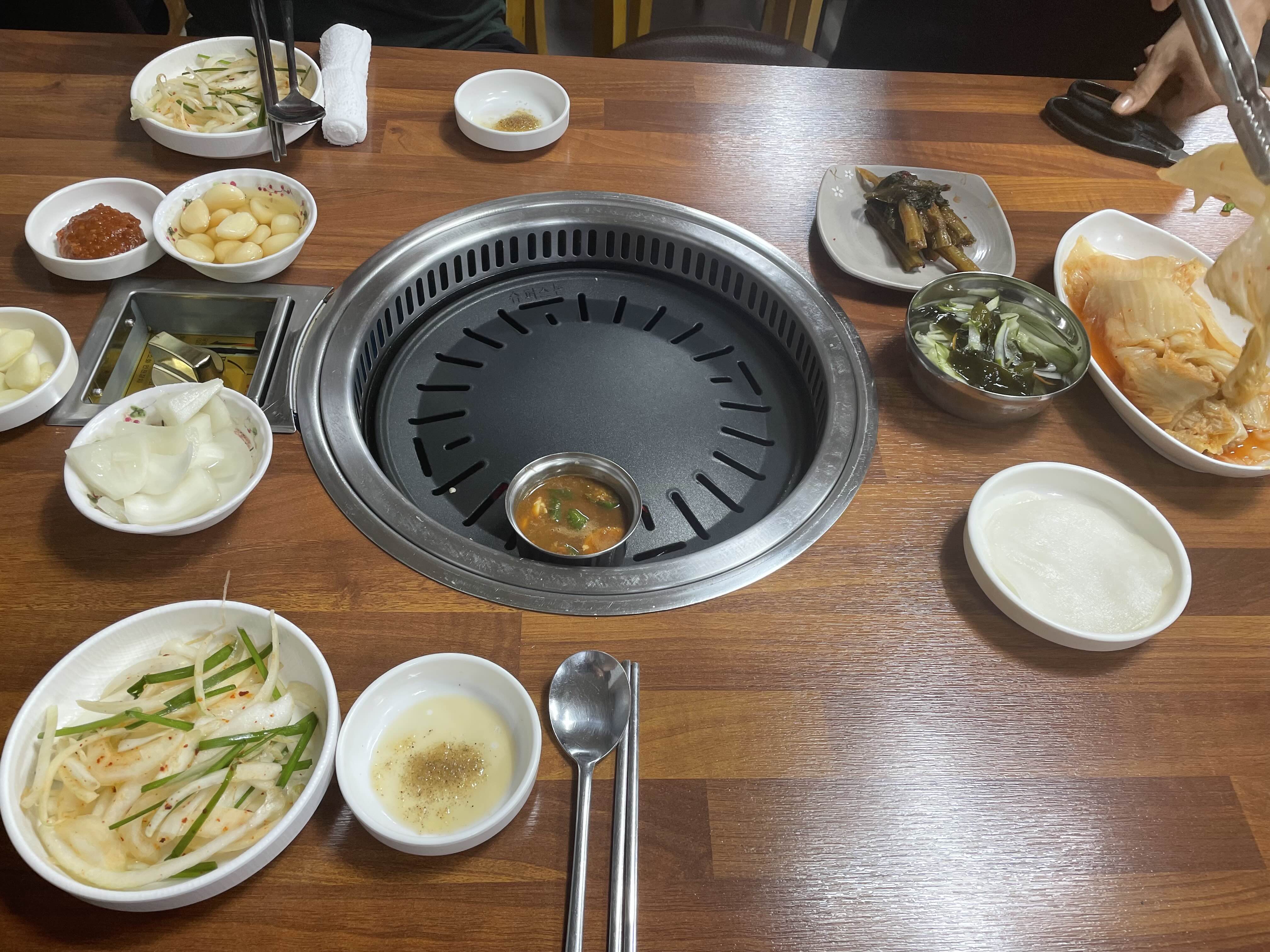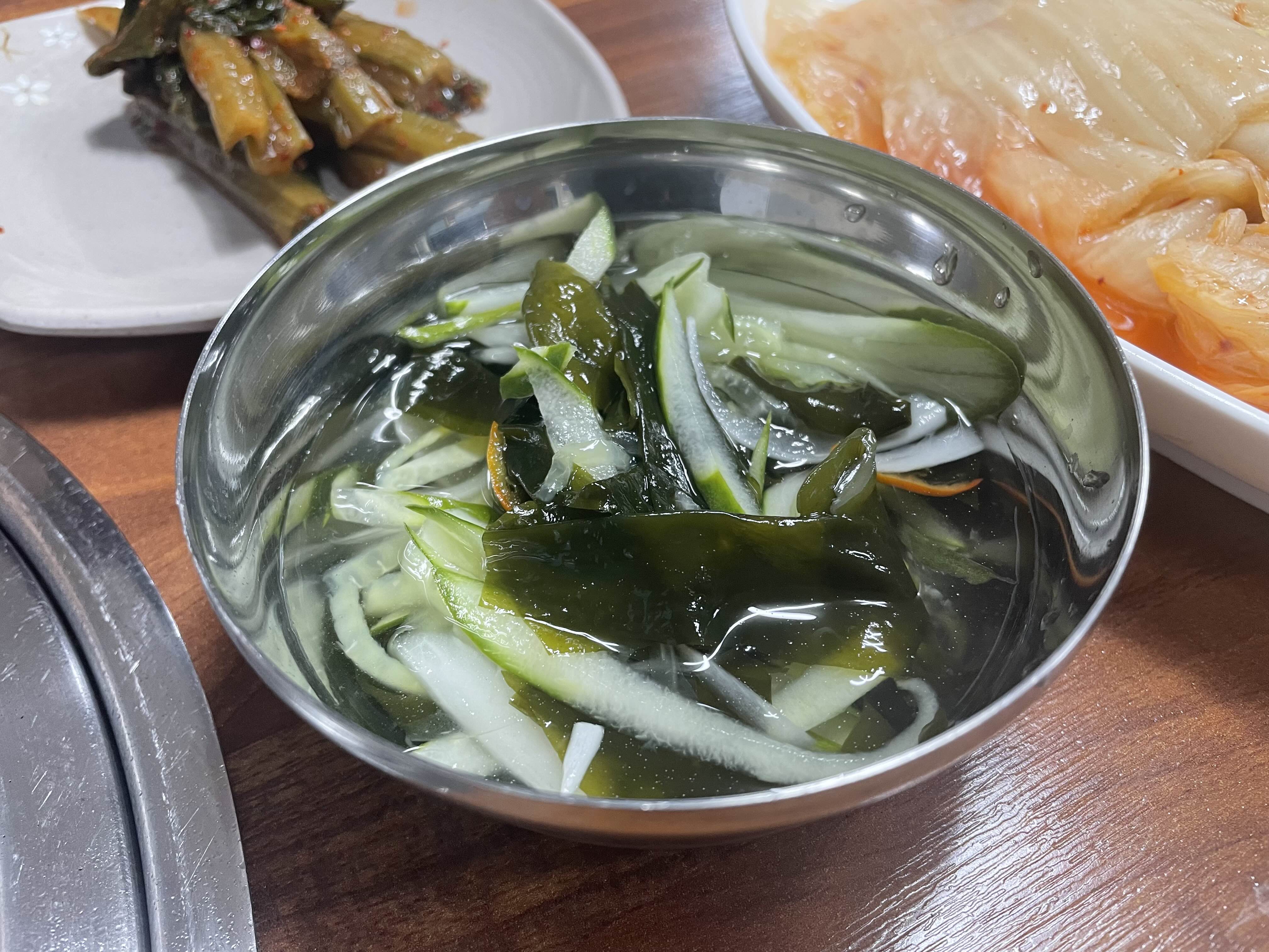 기본으로 물김치, 오이냉국, 갓김치, 계란찜이 나왔다.