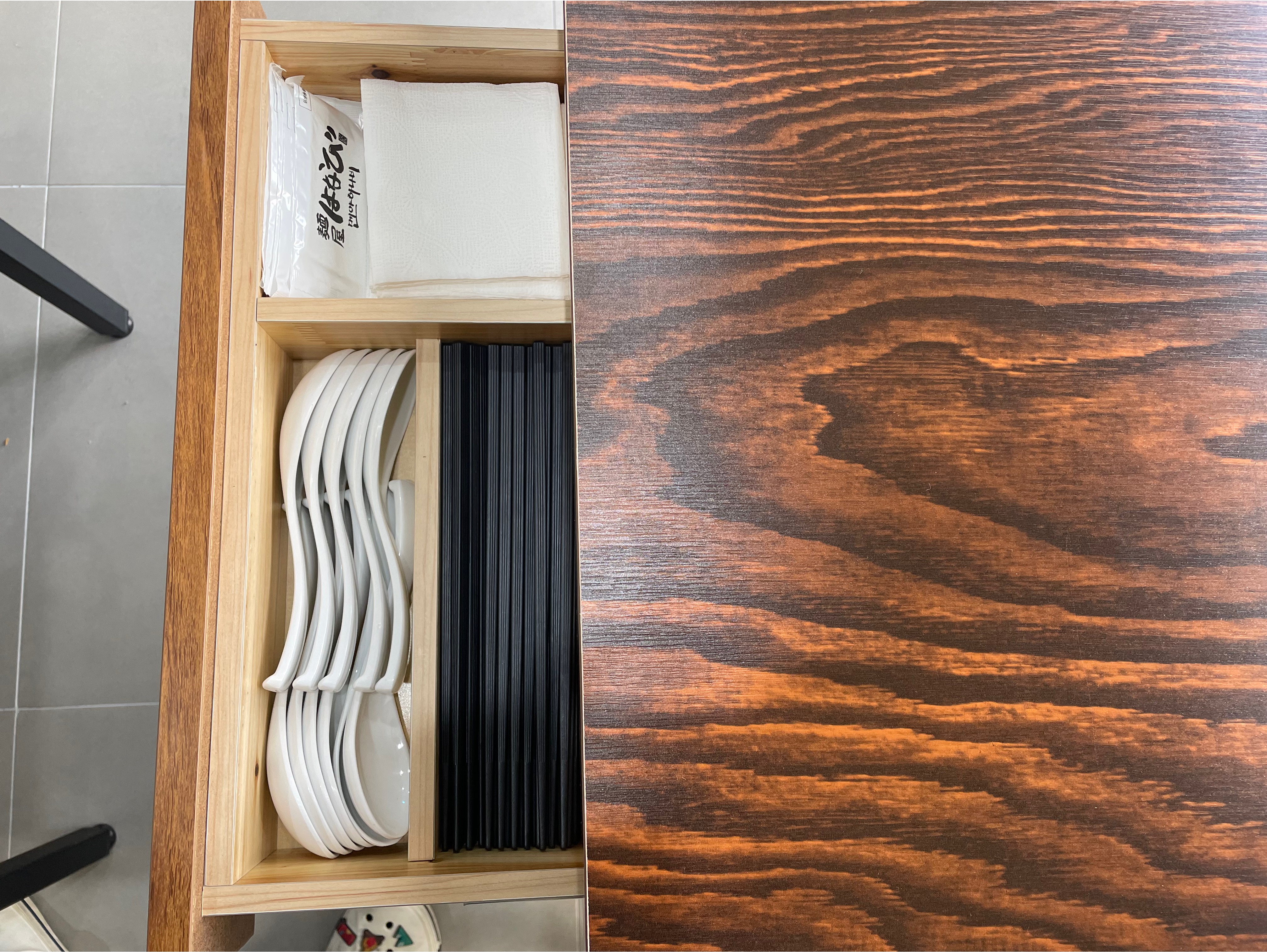 수저, 젓가락, 티슈, 물티슈가 있다.