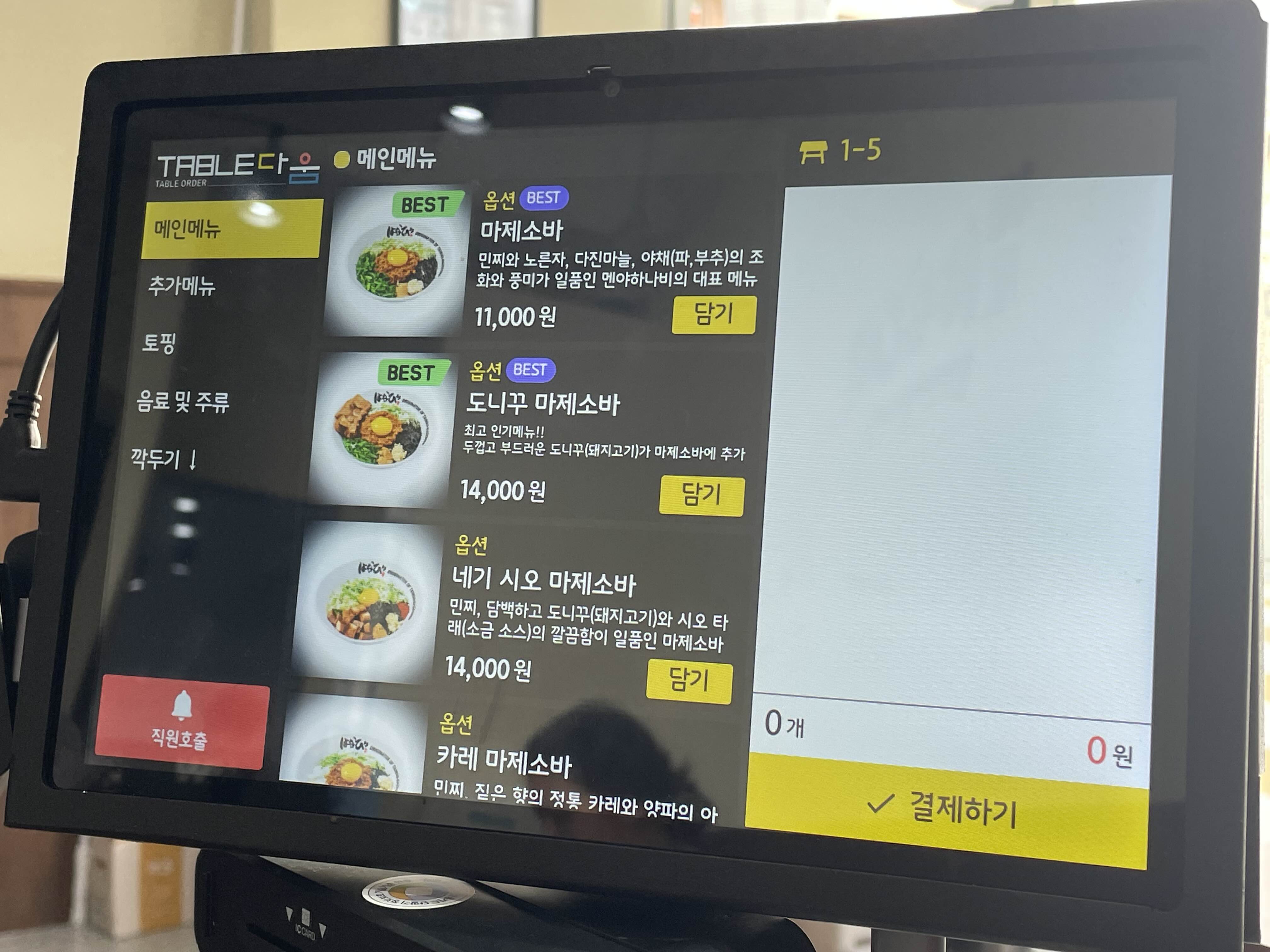 이번에는 혼밥이라 메뉴가 1가지뿐이다.