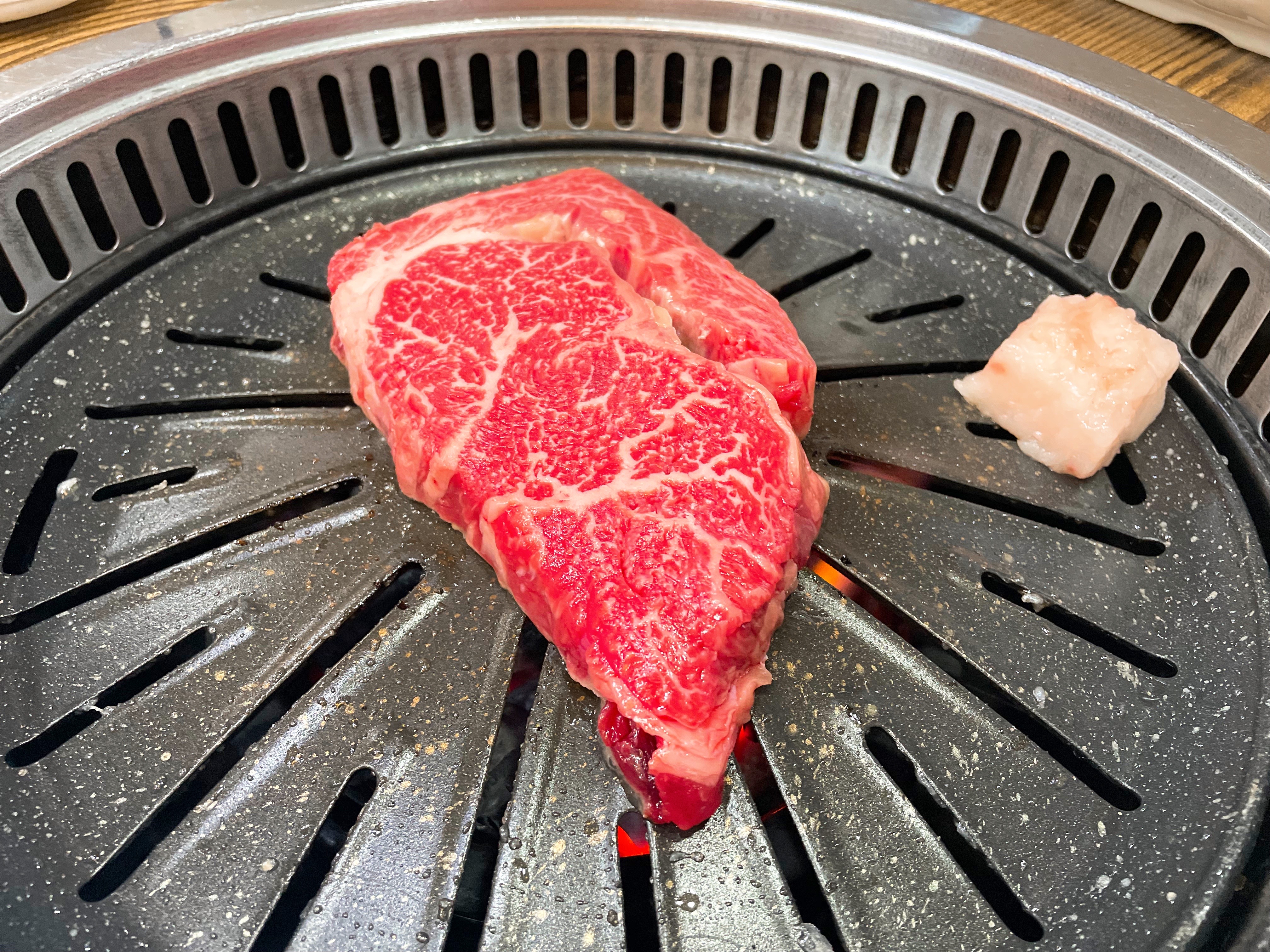 달궈진 불판을 기름으로 한번 코팅하고,