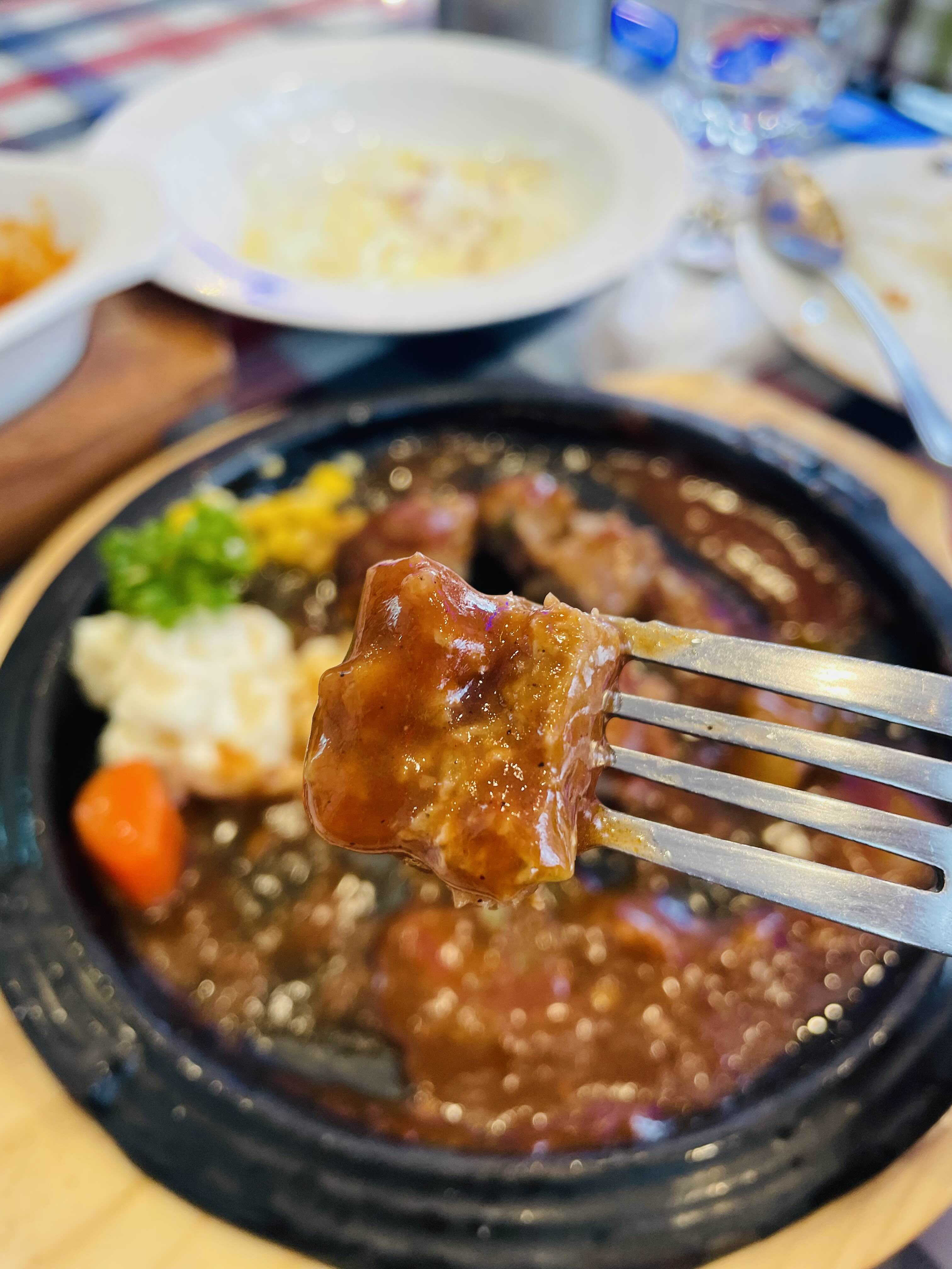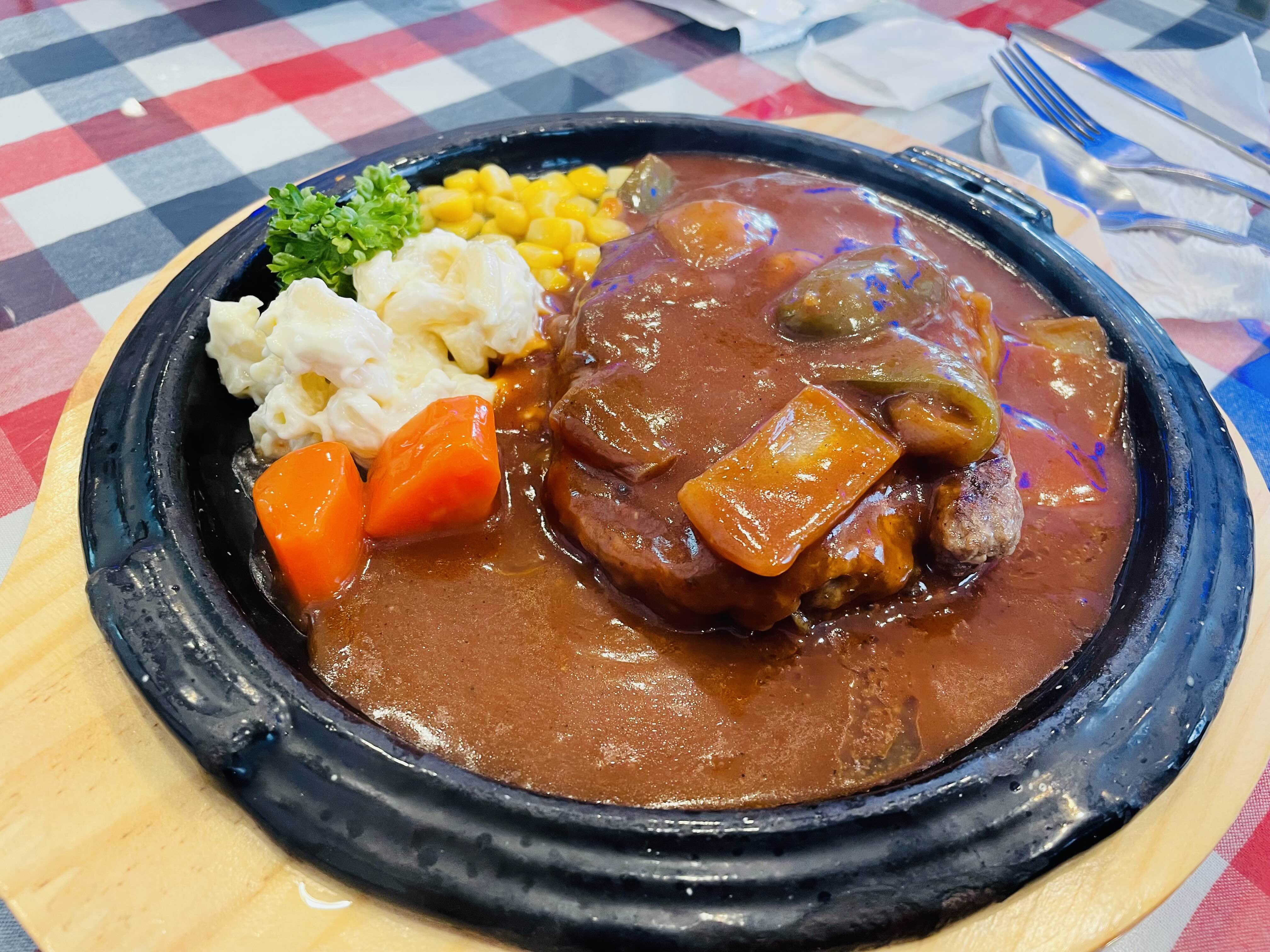 함박스테이크는 철판에 나와서인지