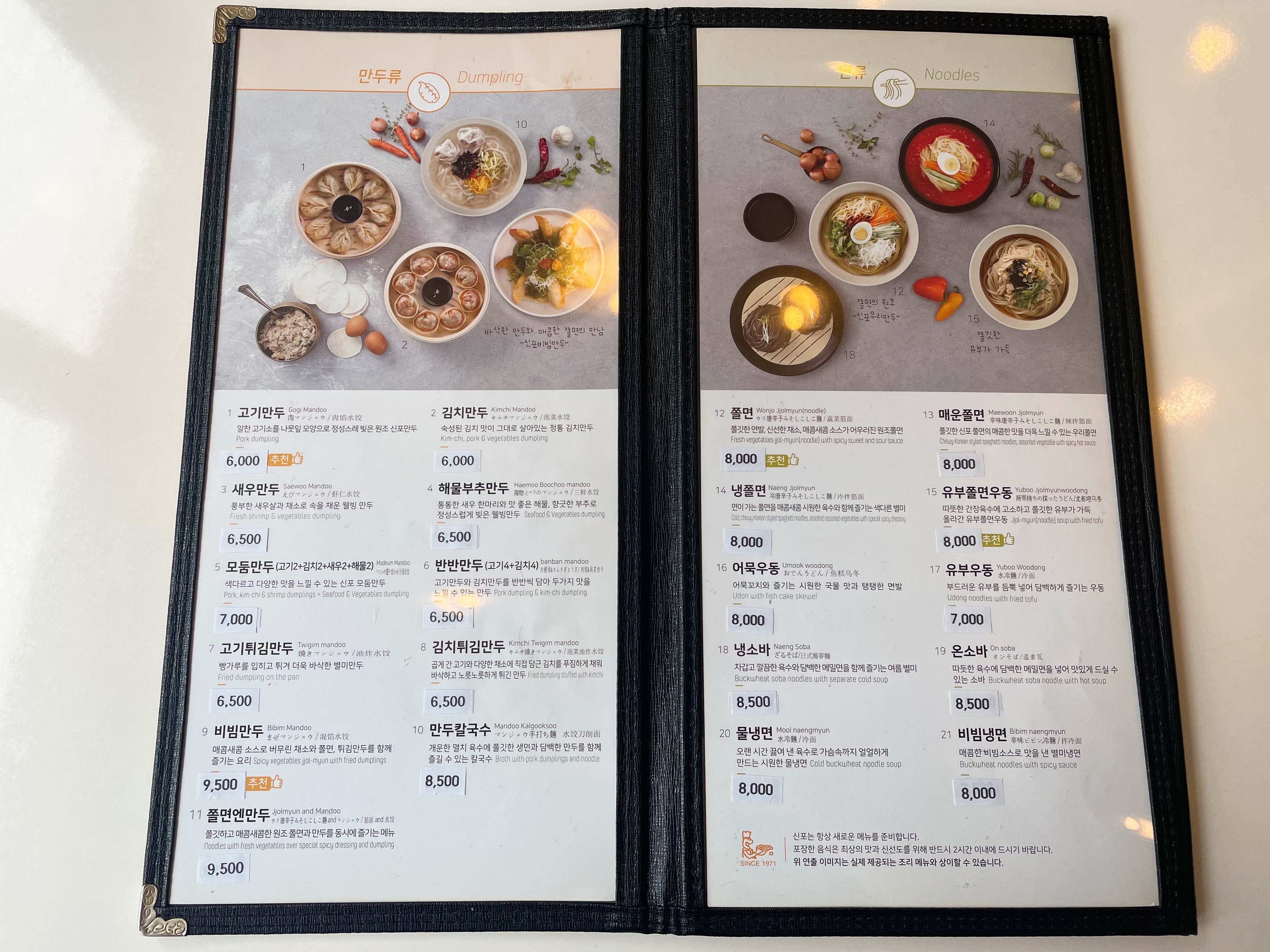 신포 우리 만두 메뉴판을 보니