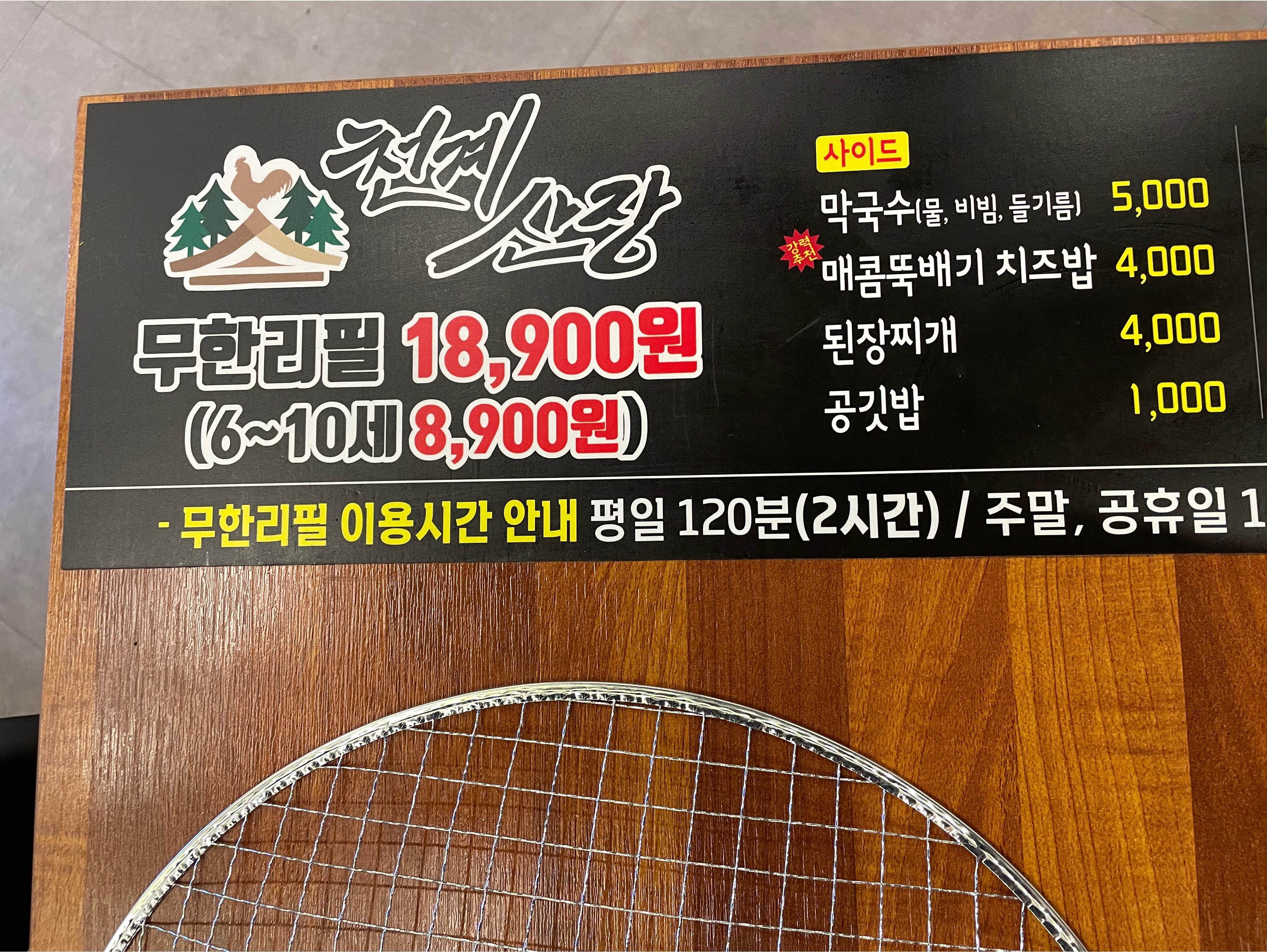 닭구이는 셀프바에서 무제한 이용 가능하니