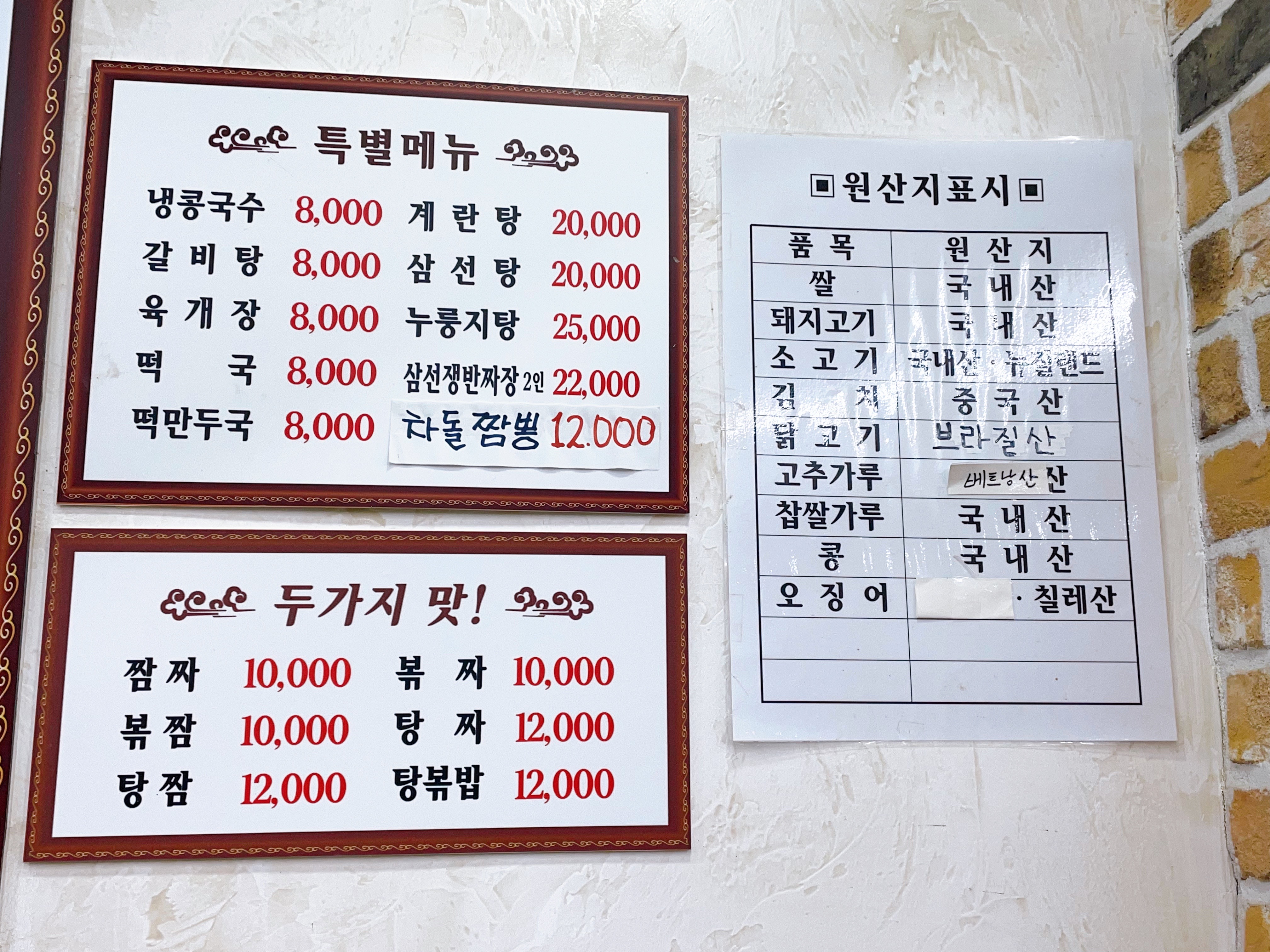 다양한 메뉴, 특별메뉴, 반반메뉴, 원산지 표시도
