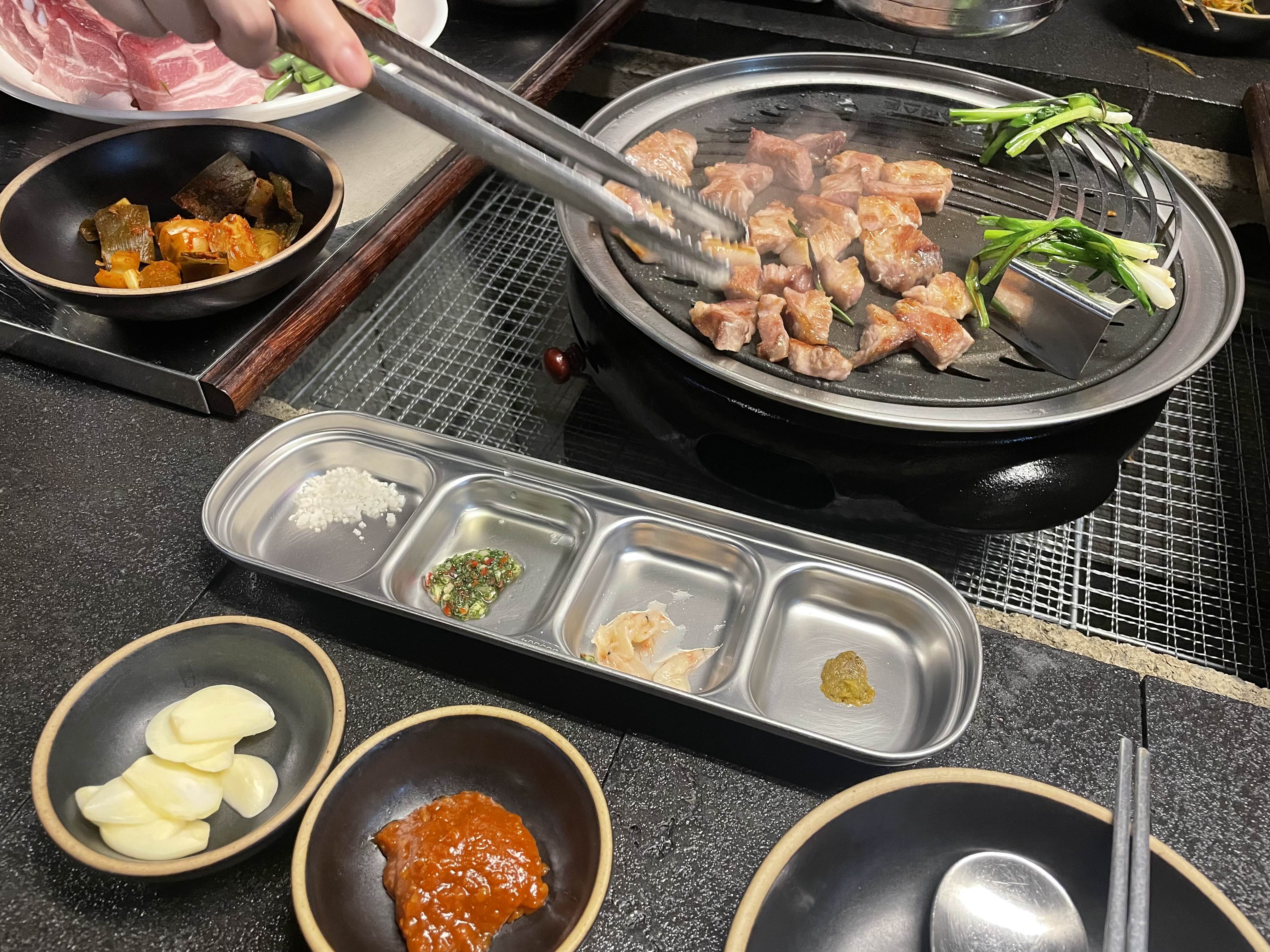 이제 고기가 익어가는 중이다.